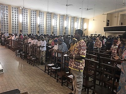 Comme cela a été si bien annoncé, les Religieux et Religieuses de la ville de Kinshasa se sont retrouvés dans la paroisse Sacré-Cœur/Gombe à partir de 16H30’. Ils étaient en union de prière avec le Pape à Rome en vue de la paix au Soudan du Sud et en République Démocratique du Congo, les deux pays ébranlés par la déstabilisation politico-sécuritaire. La célébration était présidée par le Révérend Père Roberto PONTI, supérieur régional de la Société Saint Paul et président provincial de l’ASUMA. Signalons également la présence de son Excellence Mgr. Luis Mariano MONTEMAYOR, le Nonce Apostolique.