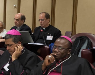 «Saint Père, Frères et Sœurs, dans cette intervention, je me réfère en particulier au deuxième chapitre de la troisième partie de l'Instrumentum Laboris, intitulé "Immergé dans le tissu de la vie quotidienne", et plus précisément aux paragraphes 160 et 161, qui ont comme sous-titres: "Apprendre à vivre dans le monde numérique".