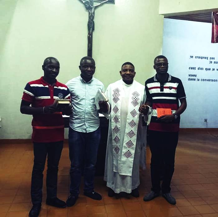 Le samedi 16 février 2019 est sorti de l’ordinaire dans la communauté Kaniki-Jaîro de la Société Saint Paul/Kimwenza ; et cela, en raison de l’entrée au postulat de ses trois aspirants internes dont Chadrack KIBOKO, Serges KALEMBO et Serges KATATO. Cette cérémonie d’entrée – étant incorporée dans l’office du soir - s’est déroulée dans la chapelle et, en présence du Père Jacques BOSEWA, nouveau Supérieur régional de la Société Saint Paul/Congo.